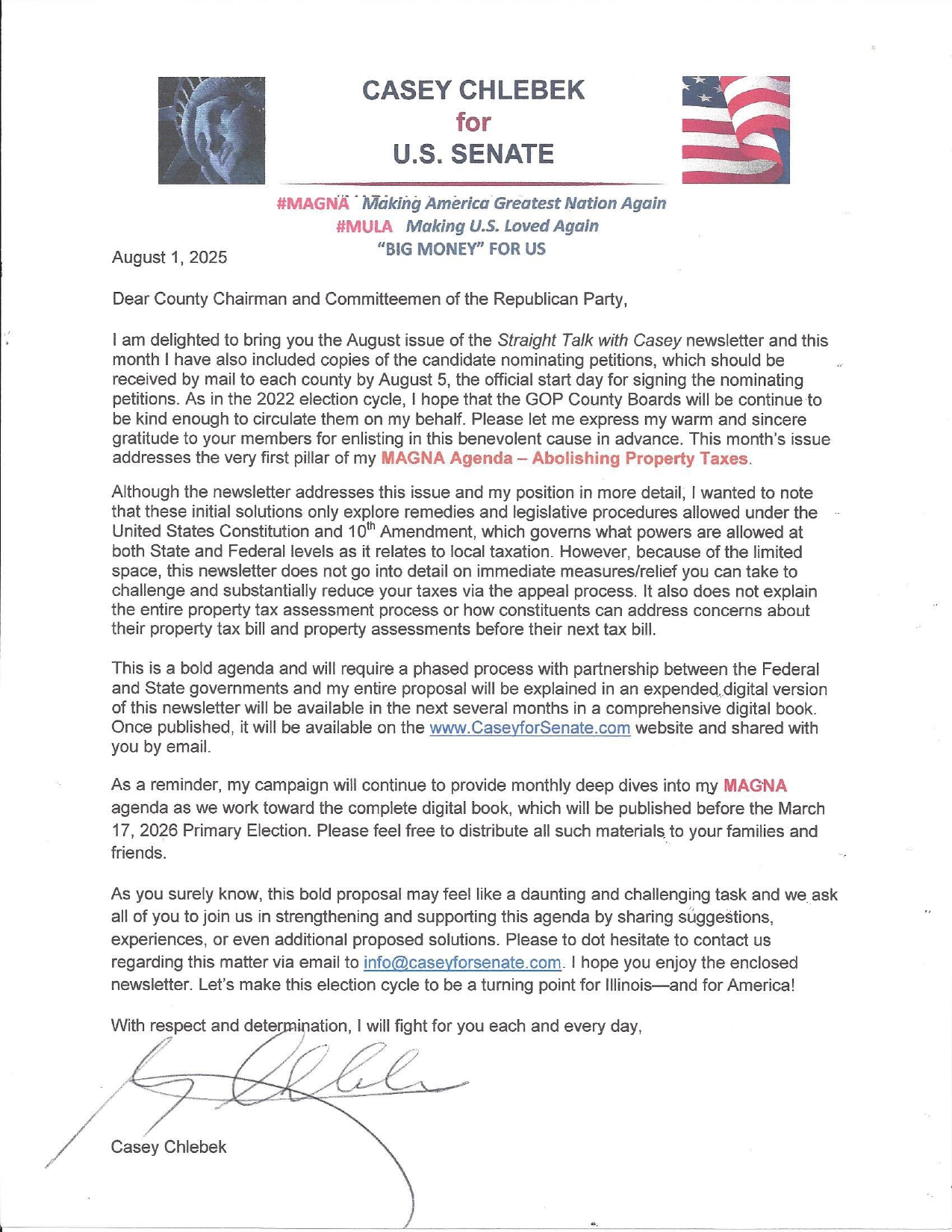 11. Casey Chlebek Qualifies for Illinois Senate Ballot with Pledge to Abolish Property Taxes