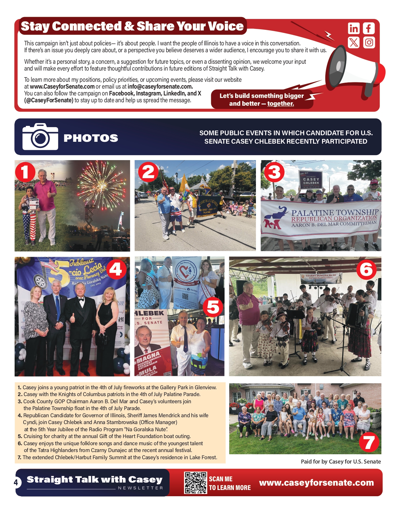 4. US SENATE CANDIDATE CAMPAIGN OF CASEY CHLEBEK FROM ILLINOIS IS NOW IN A HIGH GEAR TO REACH OUT TO ALL ILLINOIS VOTERS. CASEY RELEASES A CAMPAIGN PUBLICATION