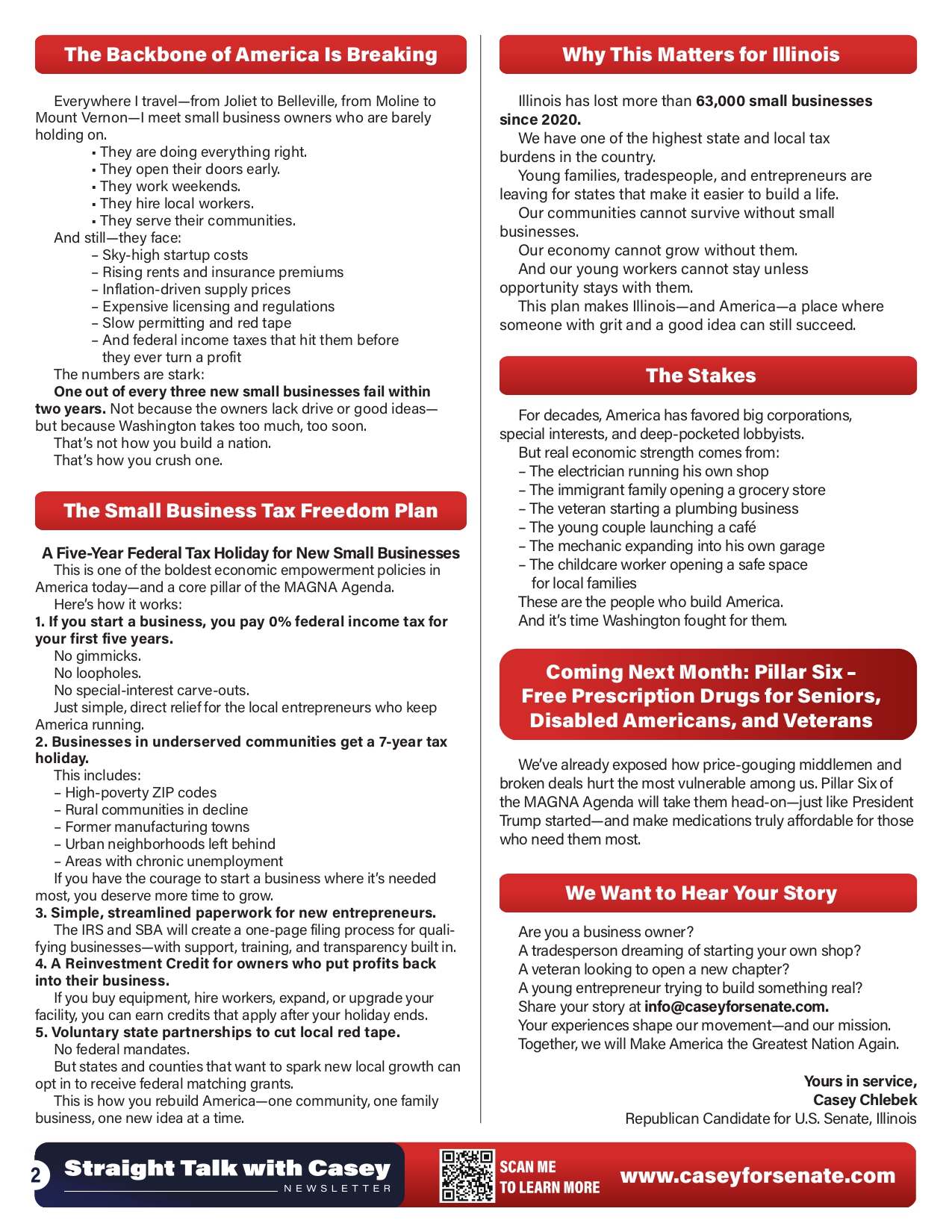 12. Casey Chlebek Unveils Five-Year Federal Tax Holiday for New Small Businesses