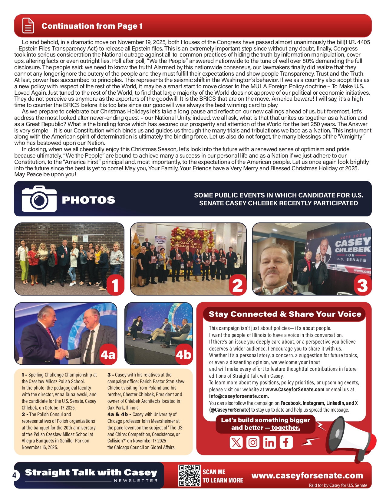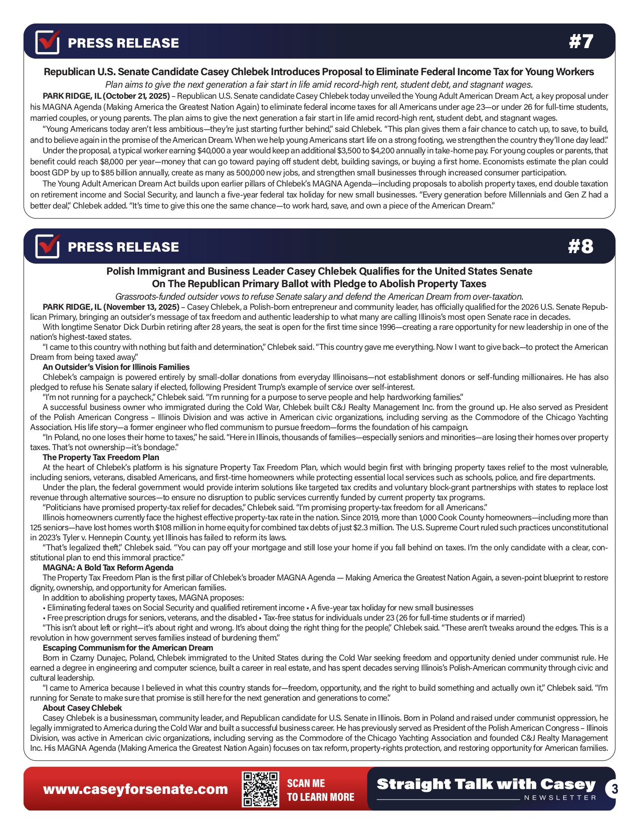 4. US SENATE CANDIDATE CAMPAIGN OF CASEY CHLEBEK FROM ILLINOIS IS NOW IN A HIGH GEAR TO REACH OUT TO ALL ILLINOIS VOTERS. CASEY RELEASES A CAMPAIGN PUBLICATION