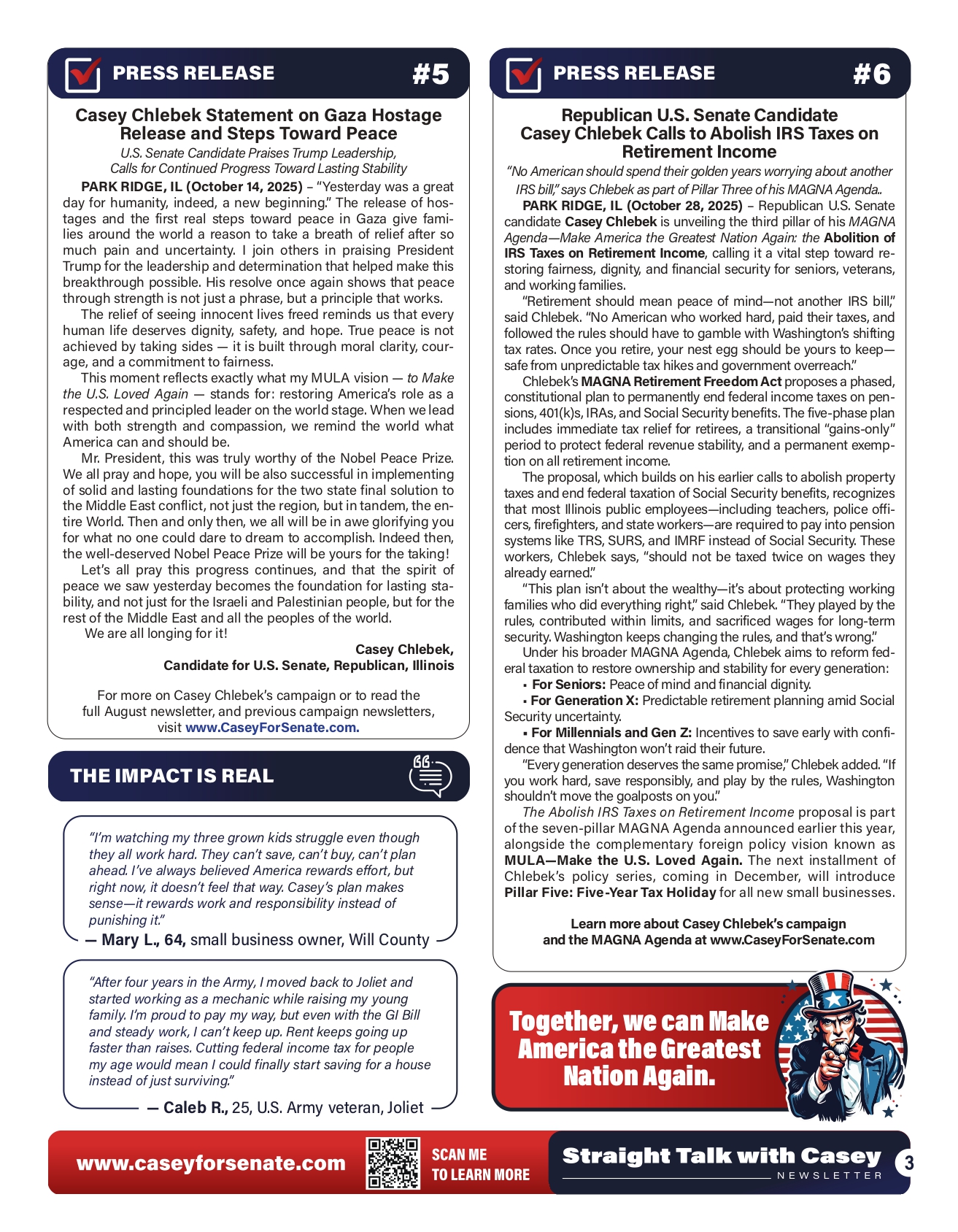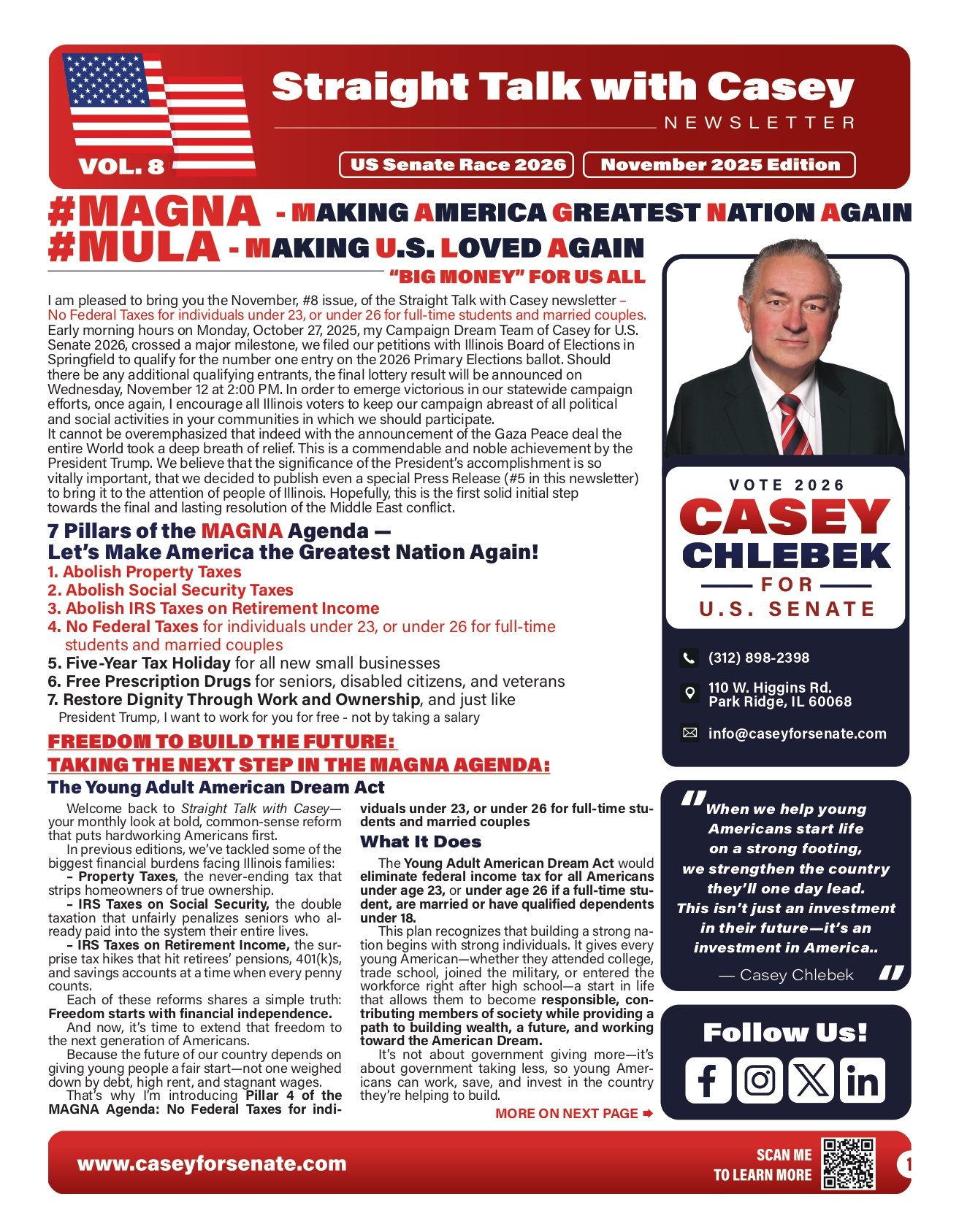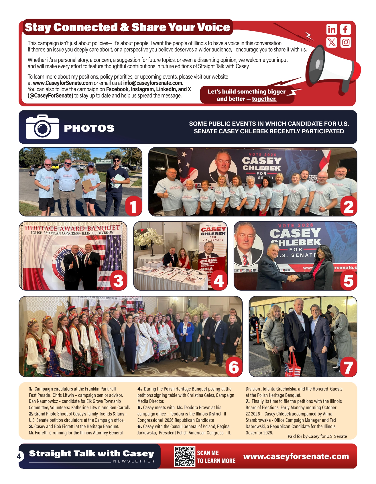 4. US SENATE CANDIDATE CAMPAIGN OF CASEY CHLEBEK FROM ILLINOIS IS NOW IN A HIGH GEAR TO REACH OUT TO ALL ILLINOIS VOTERS. CASEY RELEASES A CAMPAIGN PUBLICATION